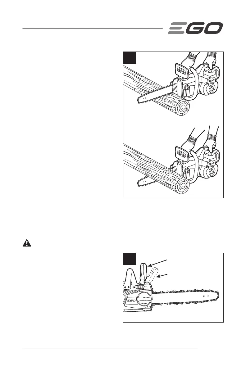 hacia delante de la empuñadura del freno contra rebote cuando la motosierra gira hacia