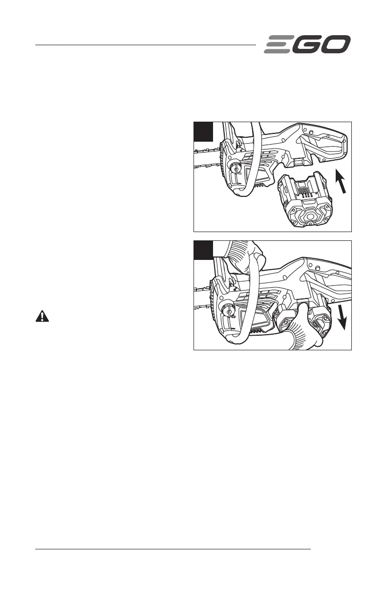 3. Tome el paquete de batería y retírelo de la motosierra.