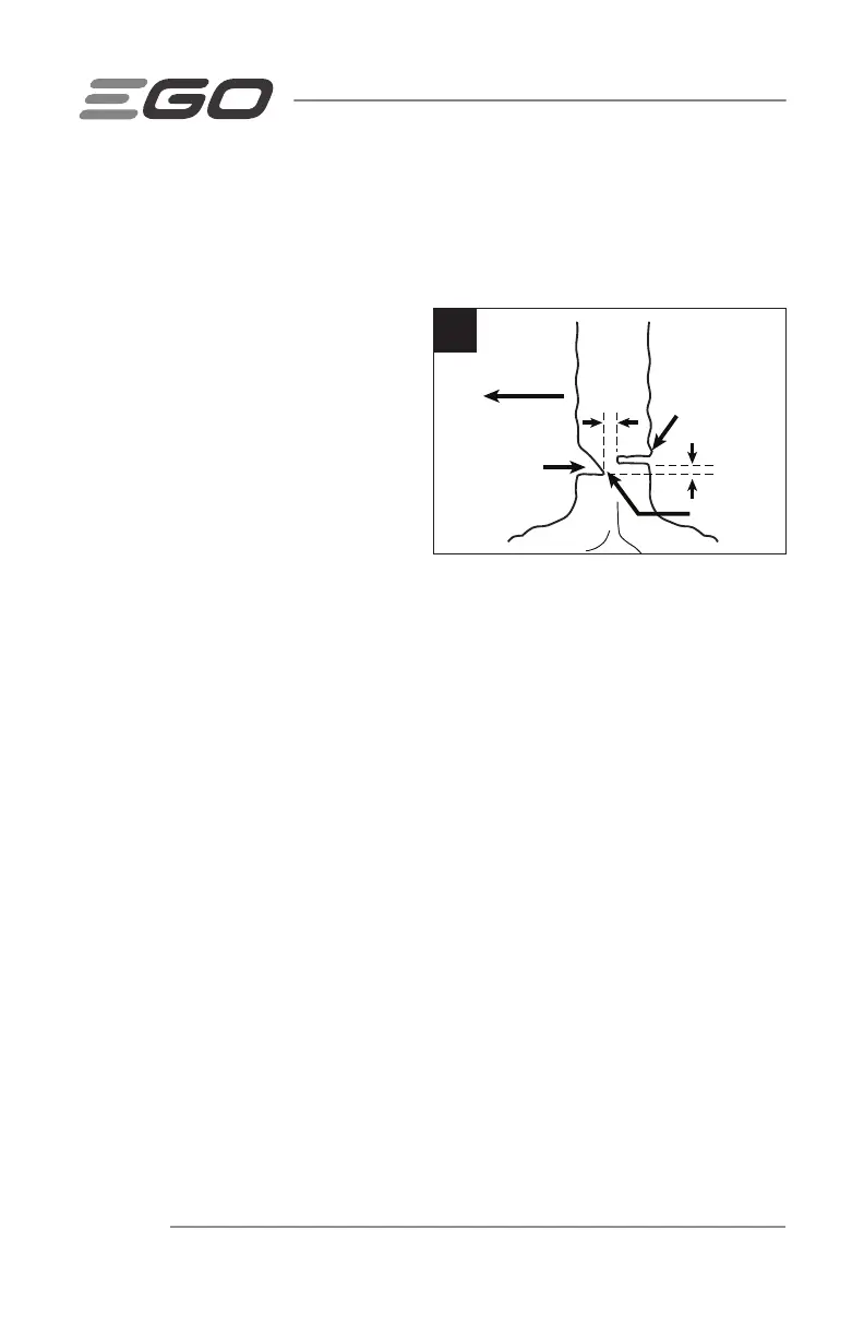 1. Make the felling back cut at least 2 inches (50.8 mm) higher than the horizontal