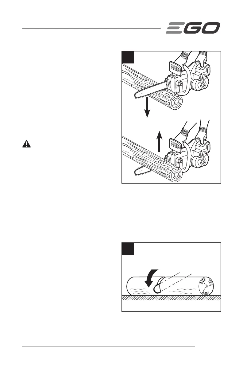 Commencez à couper au-dessus de la grume avec le dessous de la scie; exercez une