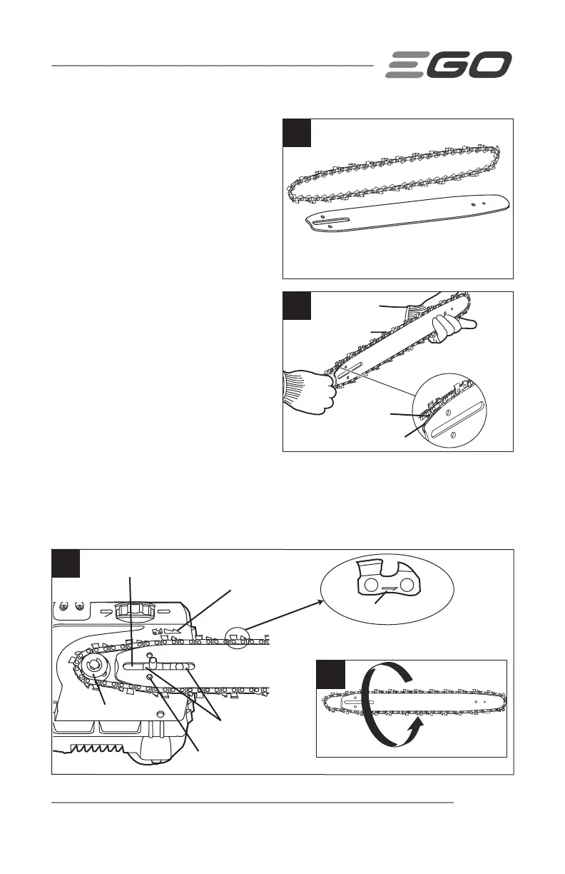 pointent dans des directions opposées, retournez l’assemblage de la chaîne de la scie