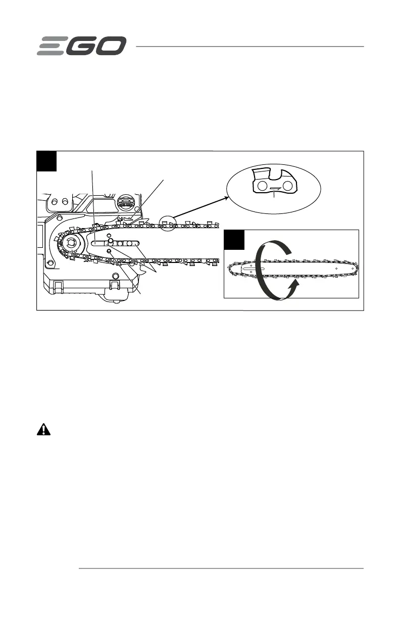 of the arrows on the saw chain corresponds to the direction of the arrow on the