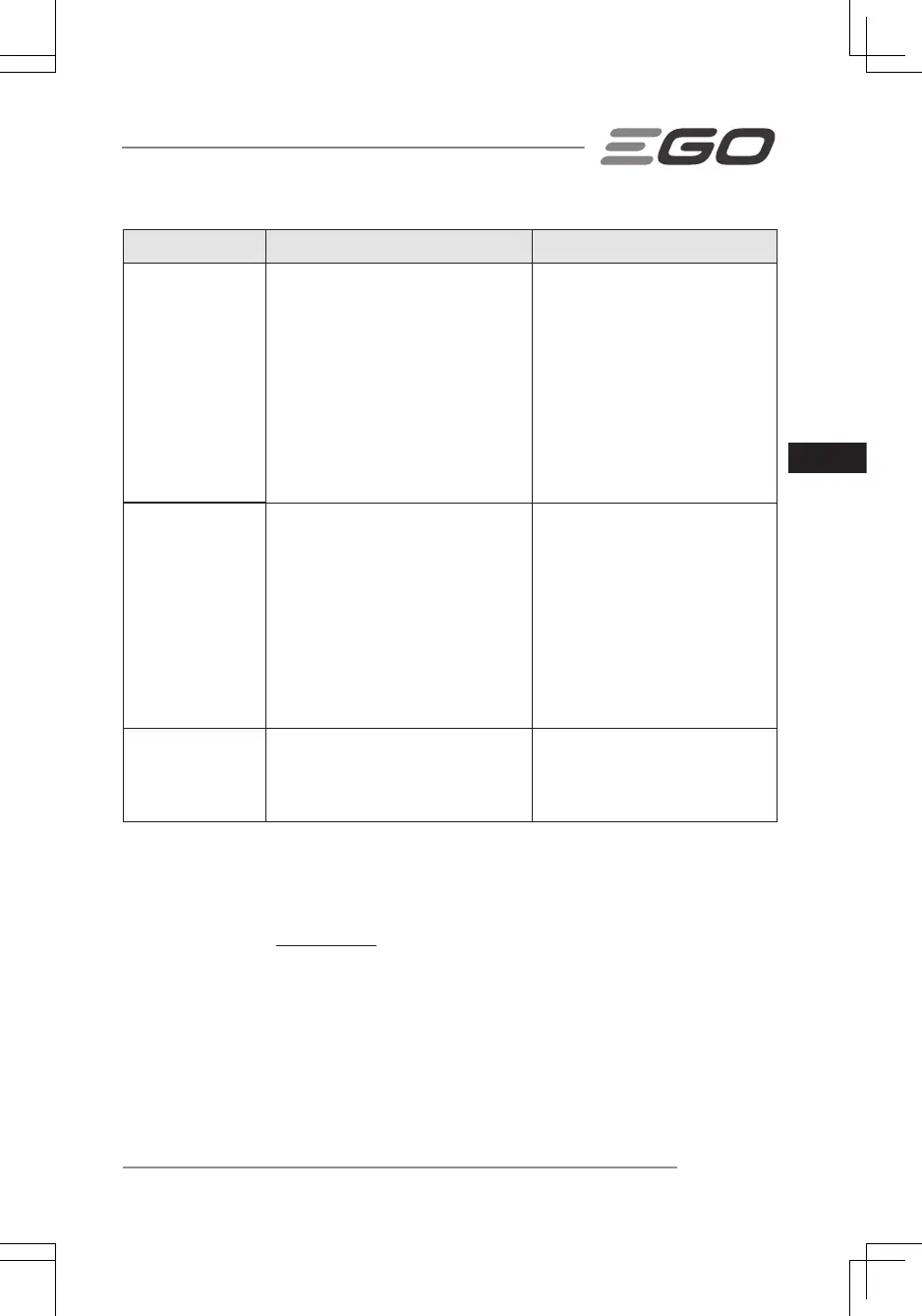 ◾ Batteripacket är urladdat. ◾ Byt ut batteripacket med EGO-