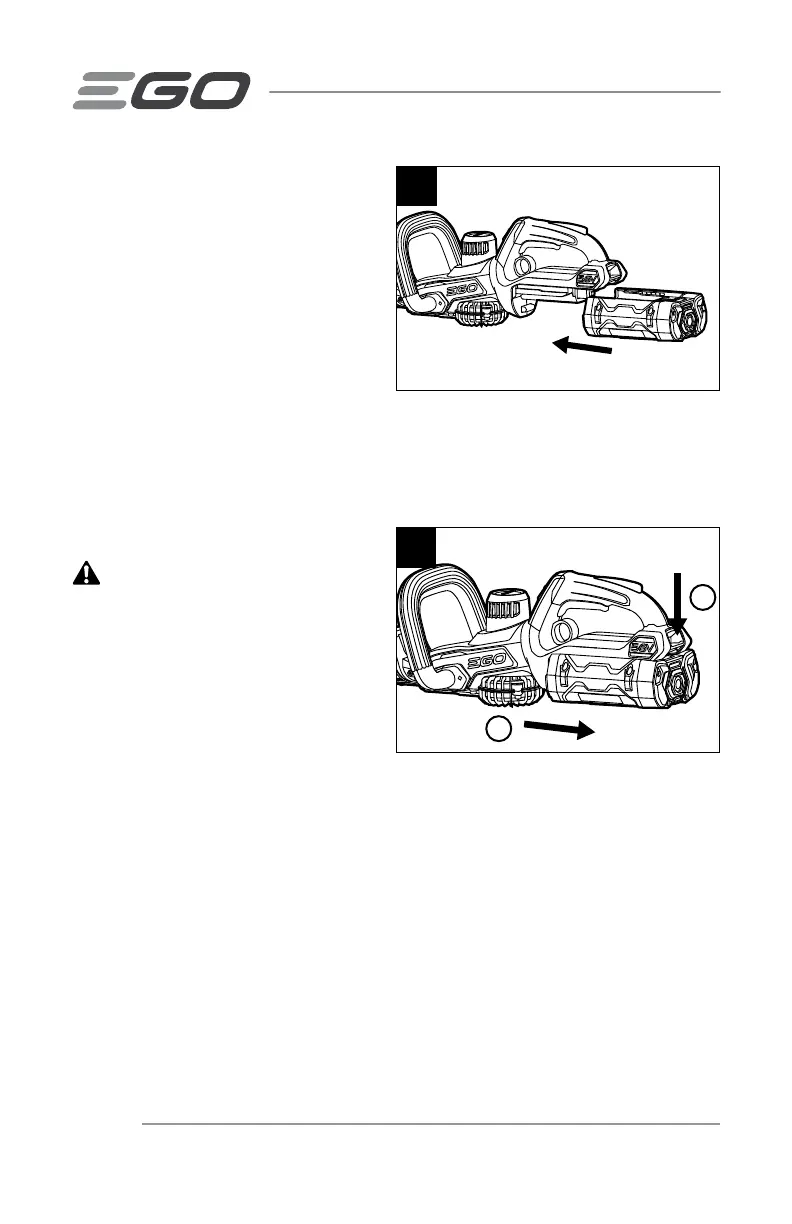 NOTE: Make sure that the latch on the hedge trimmer snaps into place and the