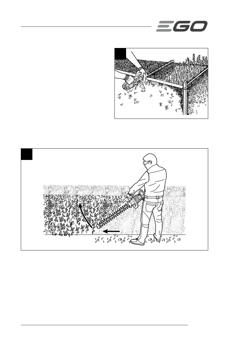 begin at the bottom and cut upwards (Fig. 6). Trim the side of a hedge so that it will