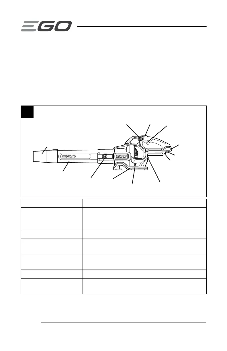 Interrupteur du débit d’air Met en marche et arrête le soufeur, règle le débit d’air