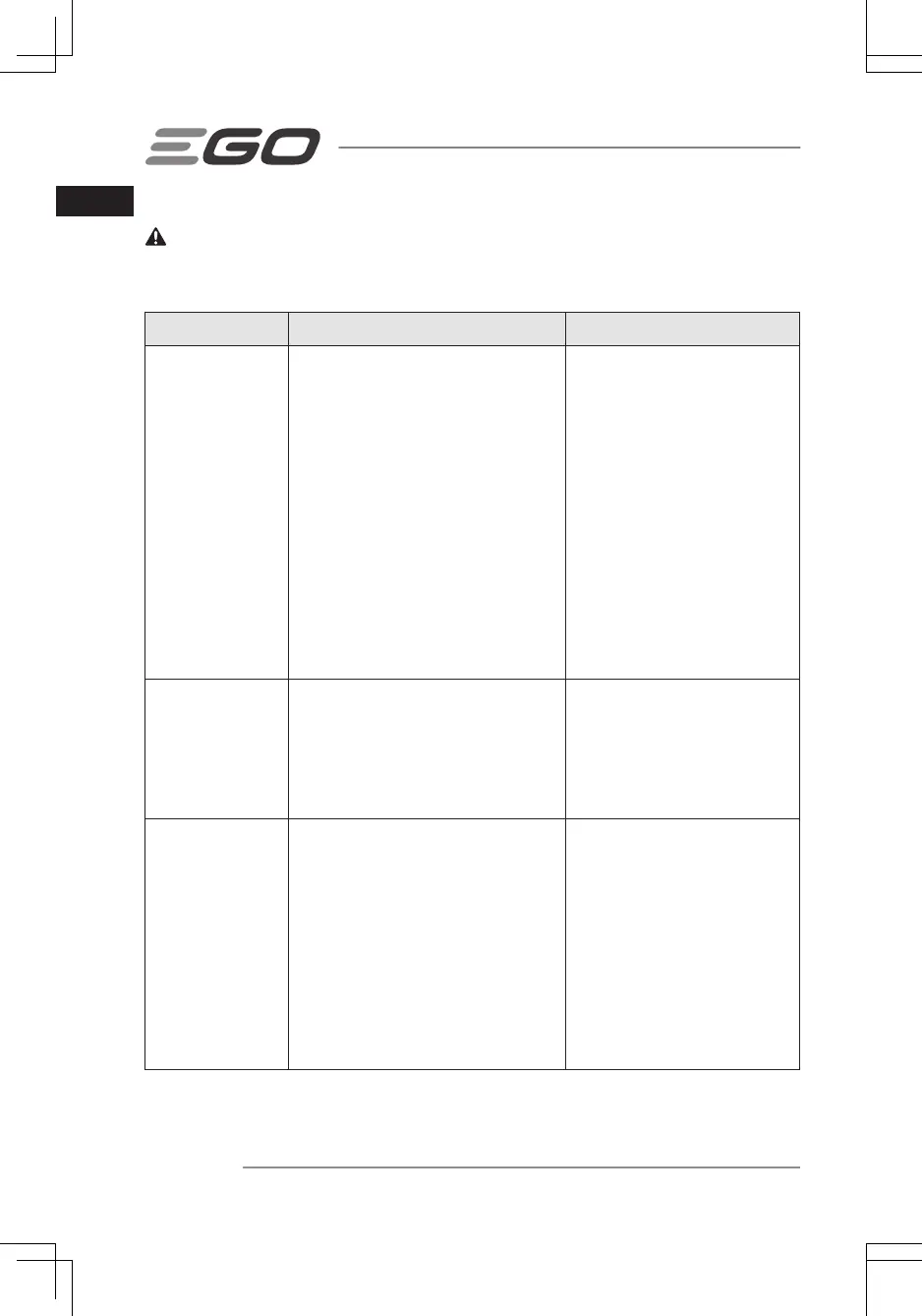 ◾ Mower is in overload condition. ◾ Raise the cutting height or slow down