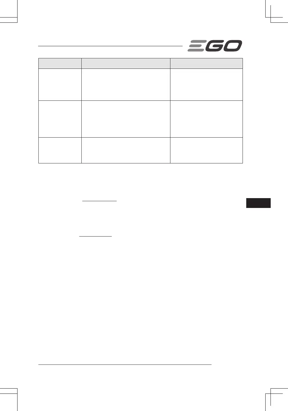 egopowerplus.com for full terms and conditions of the EGO Warranty policy.