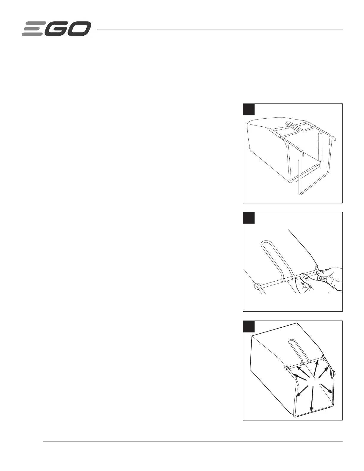 2. Slide the grass bag onto the frame, as shown in Fig. 2.