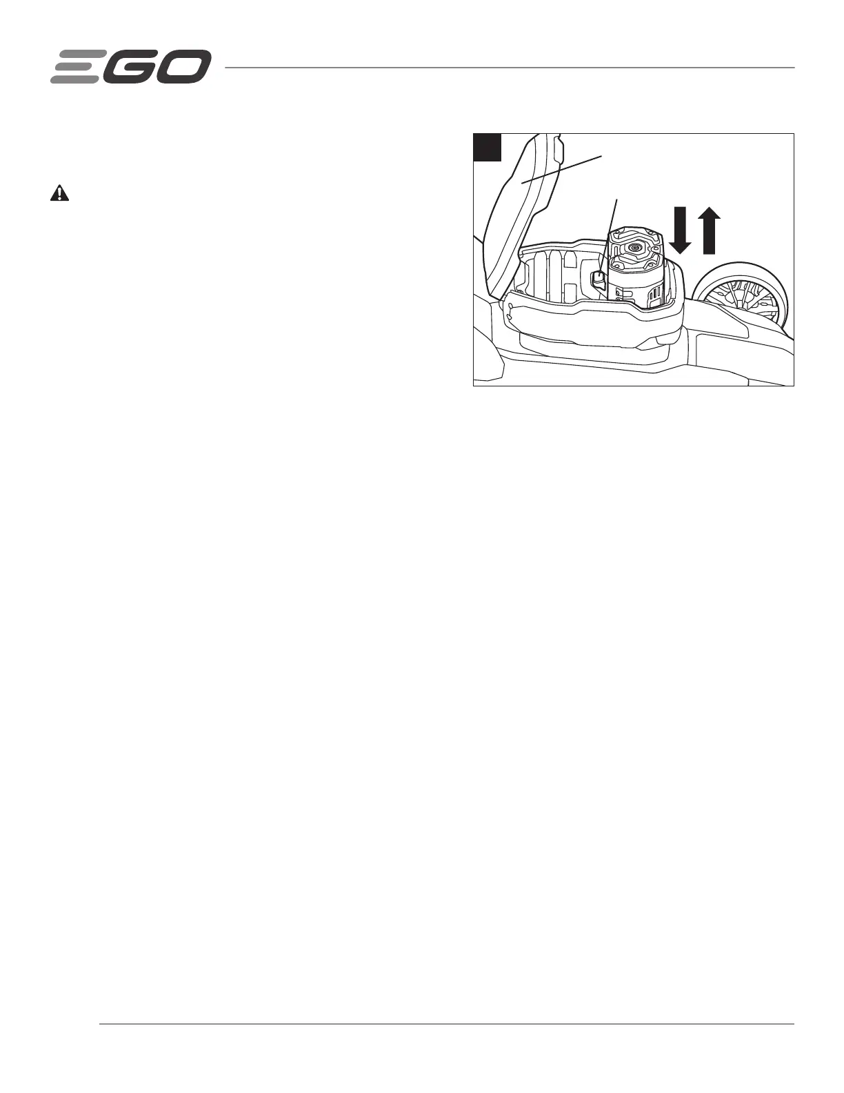 NOTICE: Make sure that the latch on the mower snaps into place and that the battery pack is secured to the mower