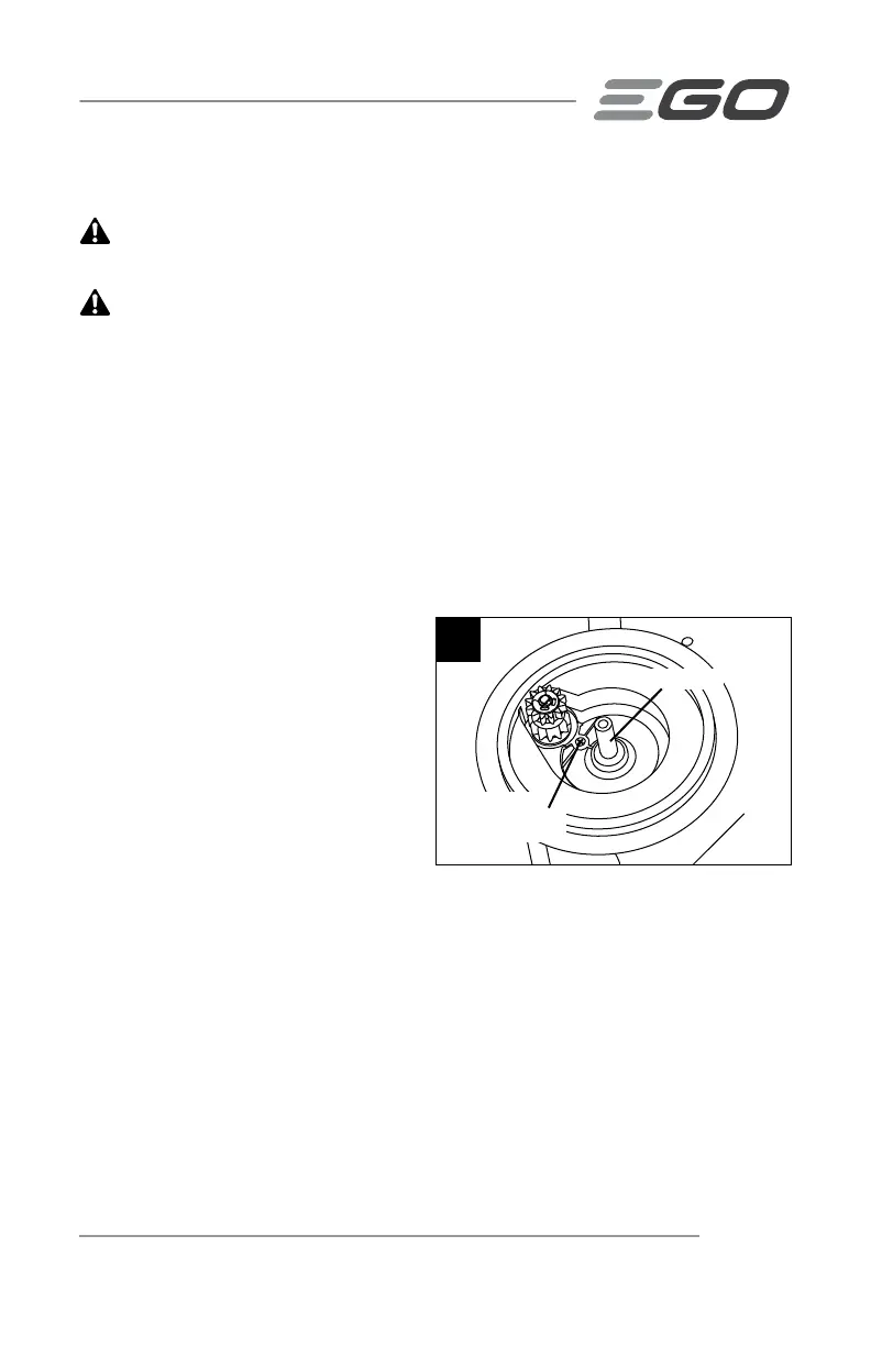 2. Turn the mower on its side with the upper surface against a wall.
