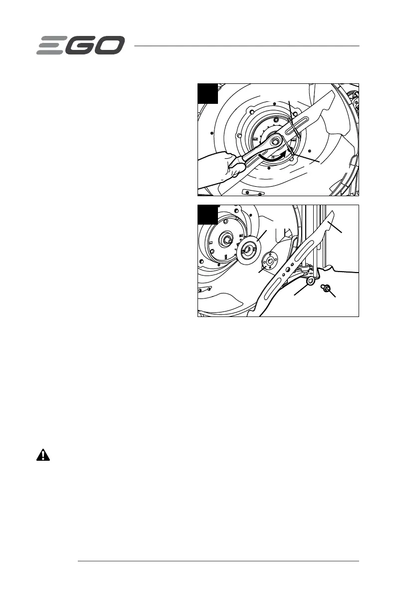 5. Siga usando la llave de 9/16 pulg (14 mm) para girar la tuerca de la cuchilla en