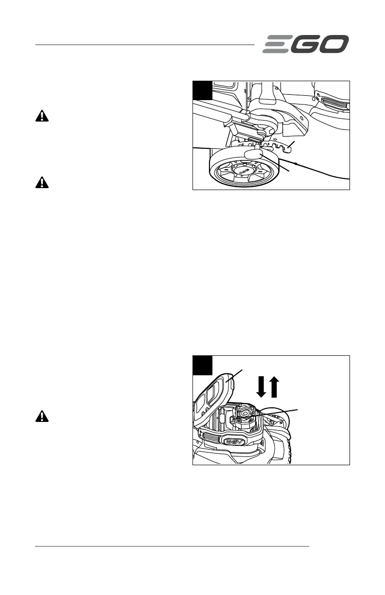 higher cutting height; move it toward the front of the mower for a lower cutting