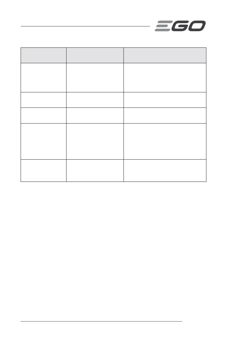 une lumière orange clignotante. Retirez le bloc-pile de la tondeuse. Vériez si de l’herbe
