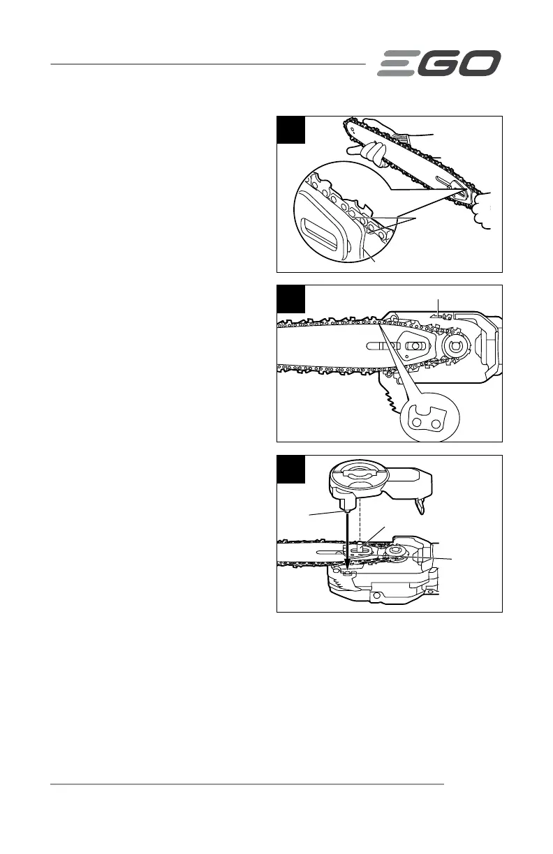 guide bar groove. Position the chain