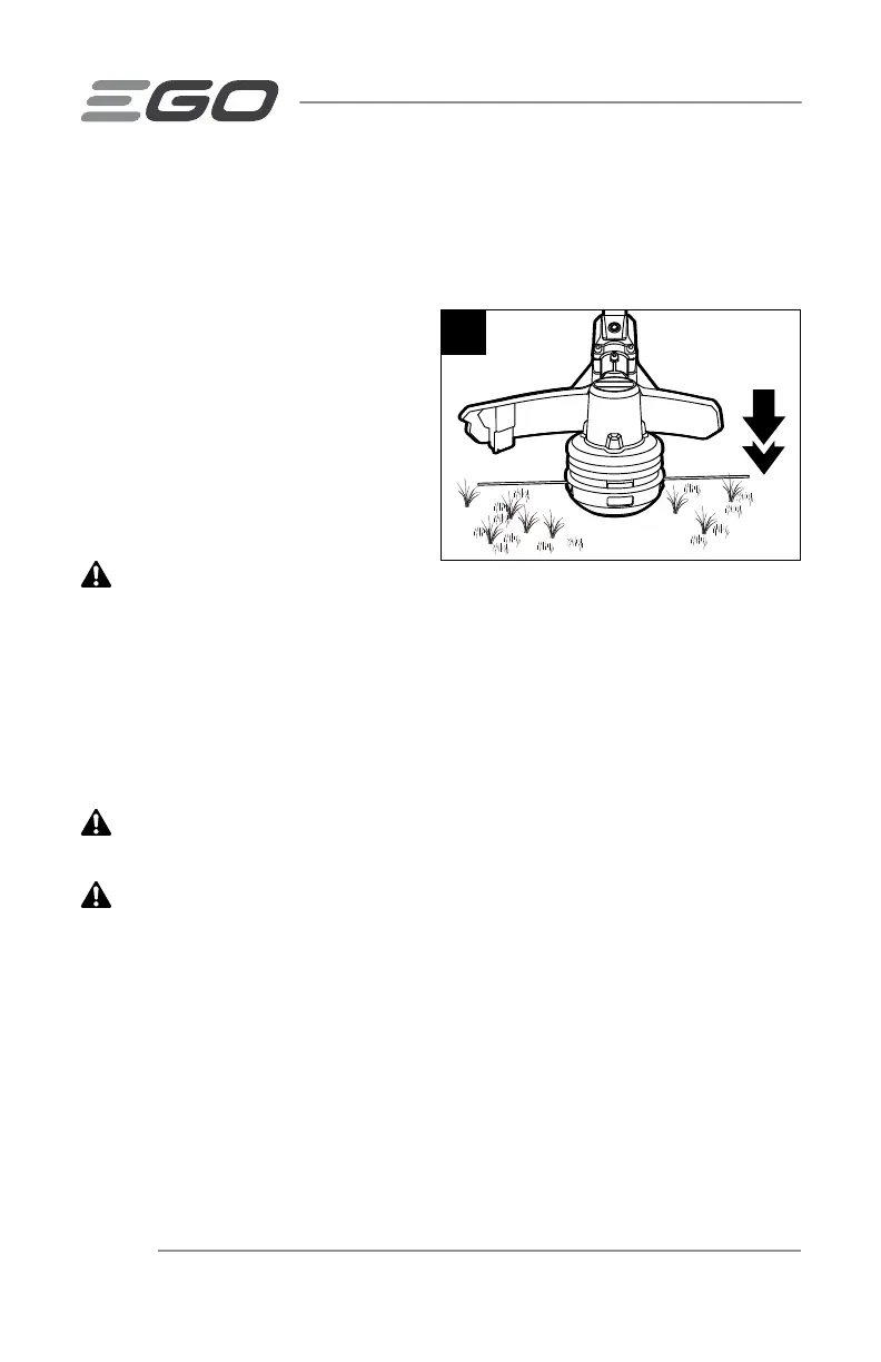 attempted in tall grass, the motor may overheat. Always keep the trimming line fully