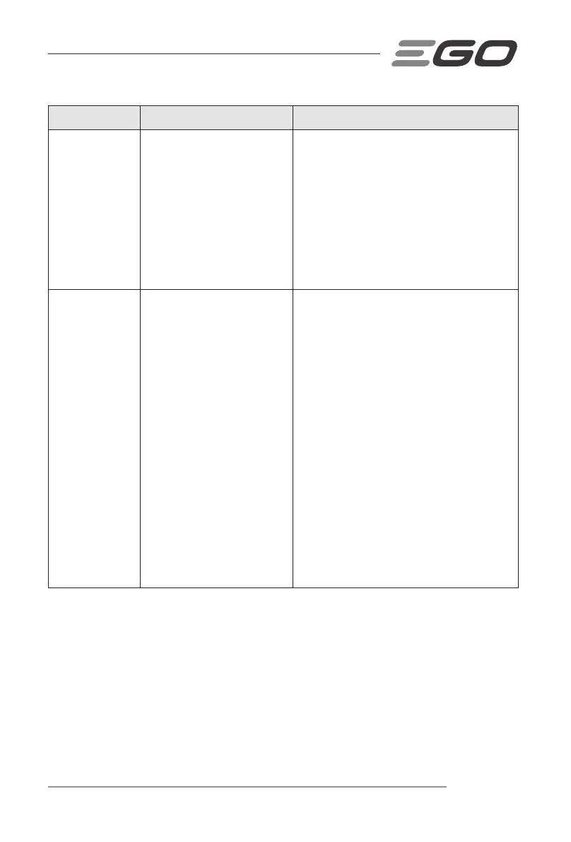 ◾ The battery pack is depleted. ◾ Charge the battery pack with EGO chargers listed