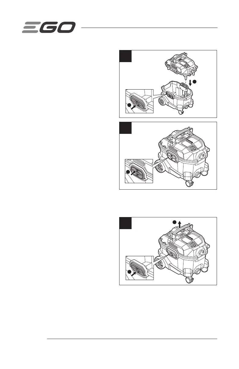 3. Empuje las partes superiores de los pestillos del tanque colector de polvo