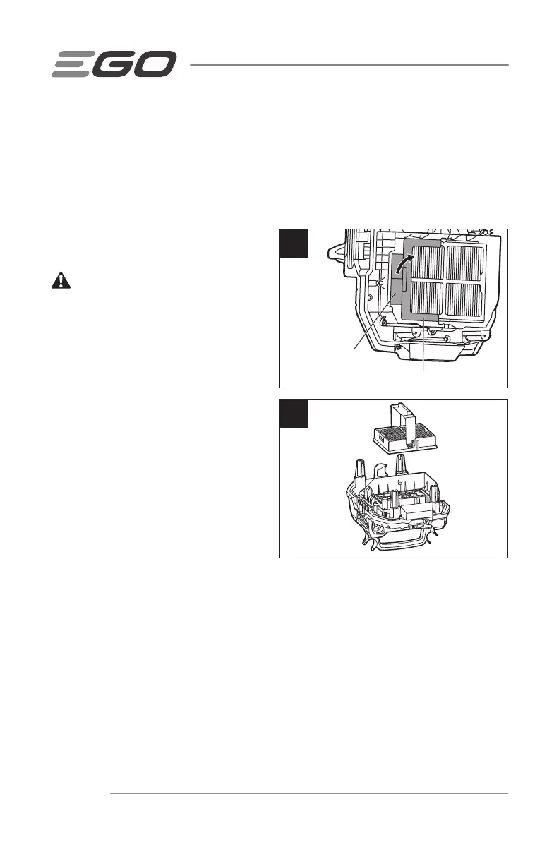 Retire el paquete de batería y examine el filtro levantando el ensamblaje del cabezal