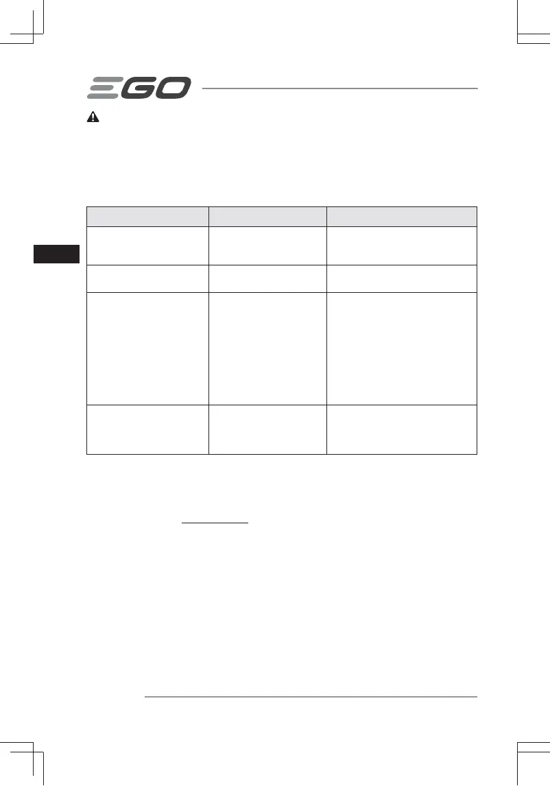 Besøg venligst hjemmesiden egopowerplus.com for fuldstændige vilkår og betingelser for EGO’s garantipolitik.