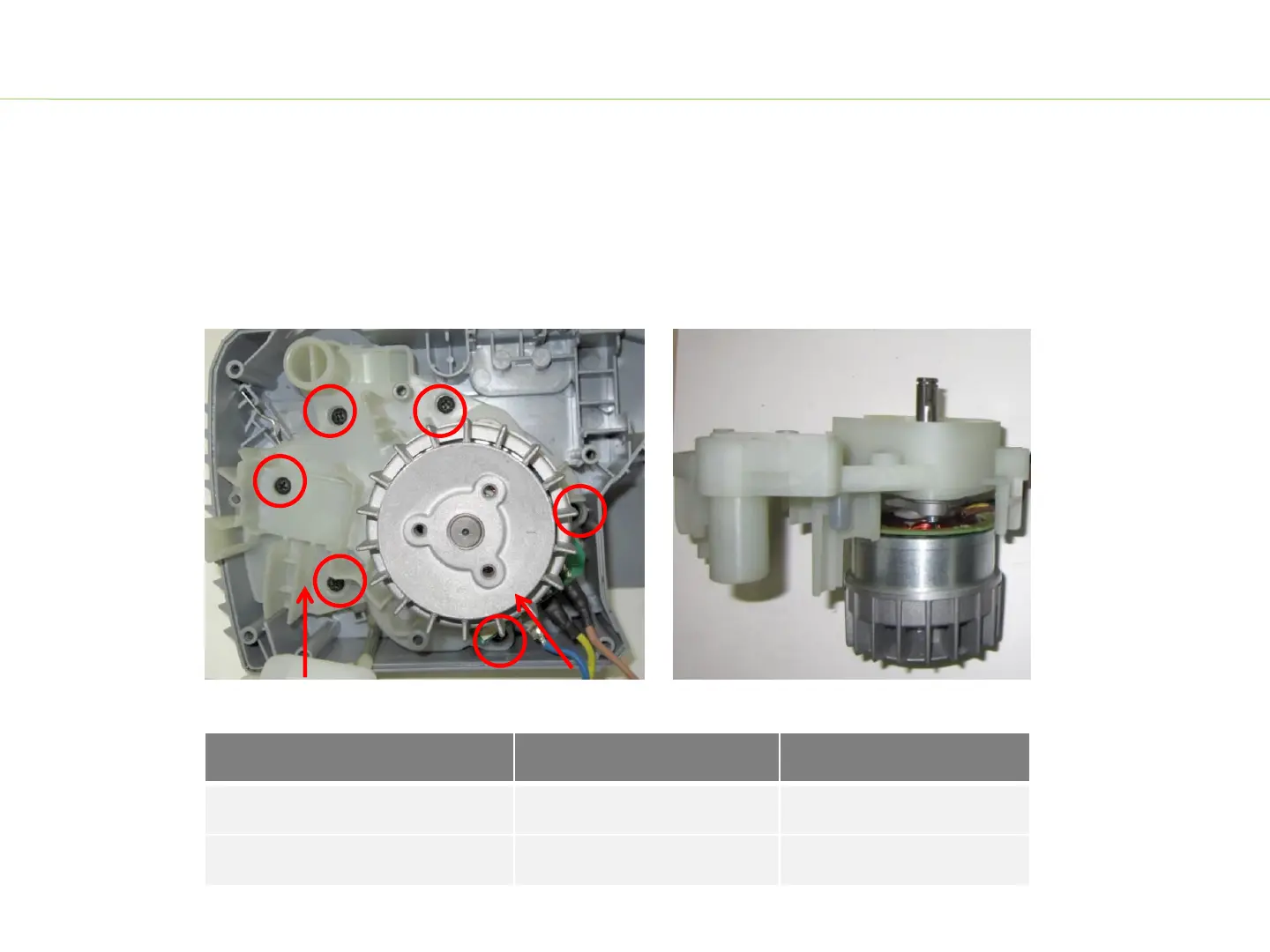 3. Loosen the 6 screws in motor support and remove the motor assembly together with motor