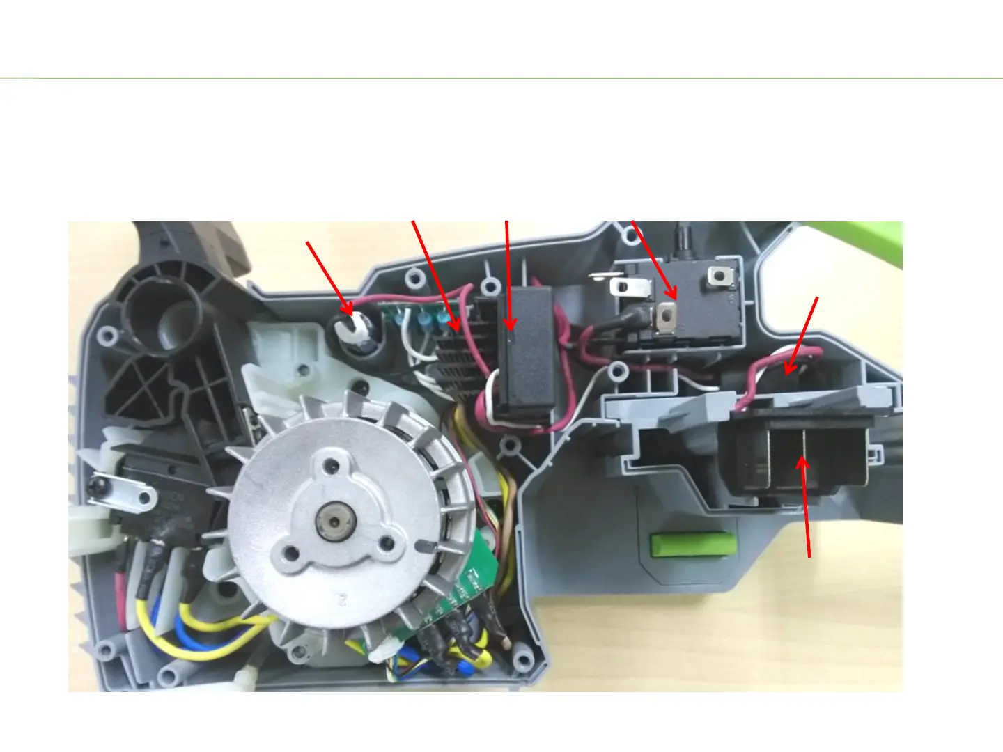 10. Align the cables in the grooves and fix the PCBA, capacitor, main switch, battery connection