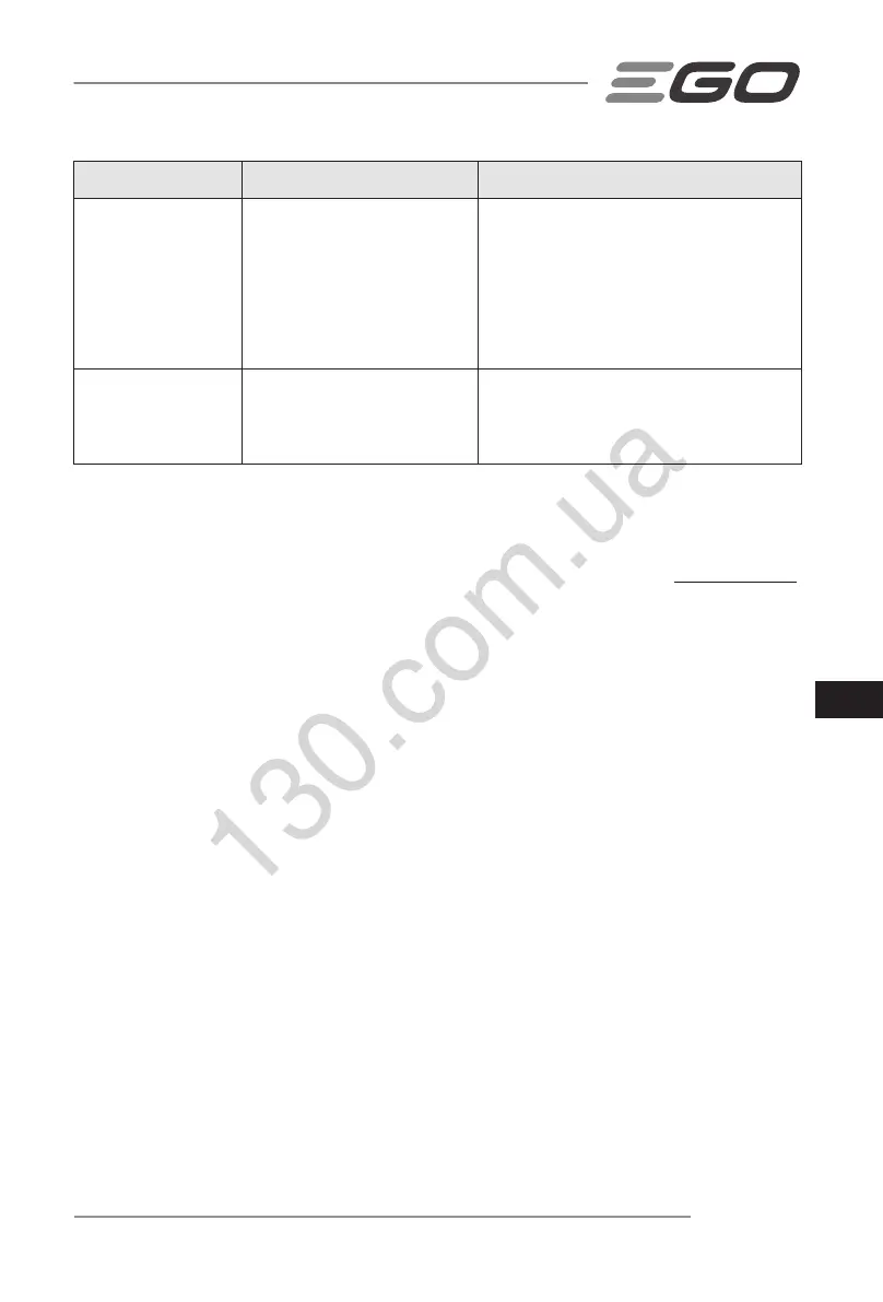◾ Przeciążenie silnika. ◾ Skontaktować się z punktem serwisowym EGO w