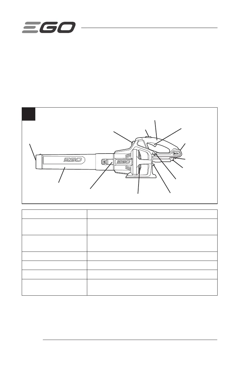 Battery-Release Button Releases the battery pack from the blower.