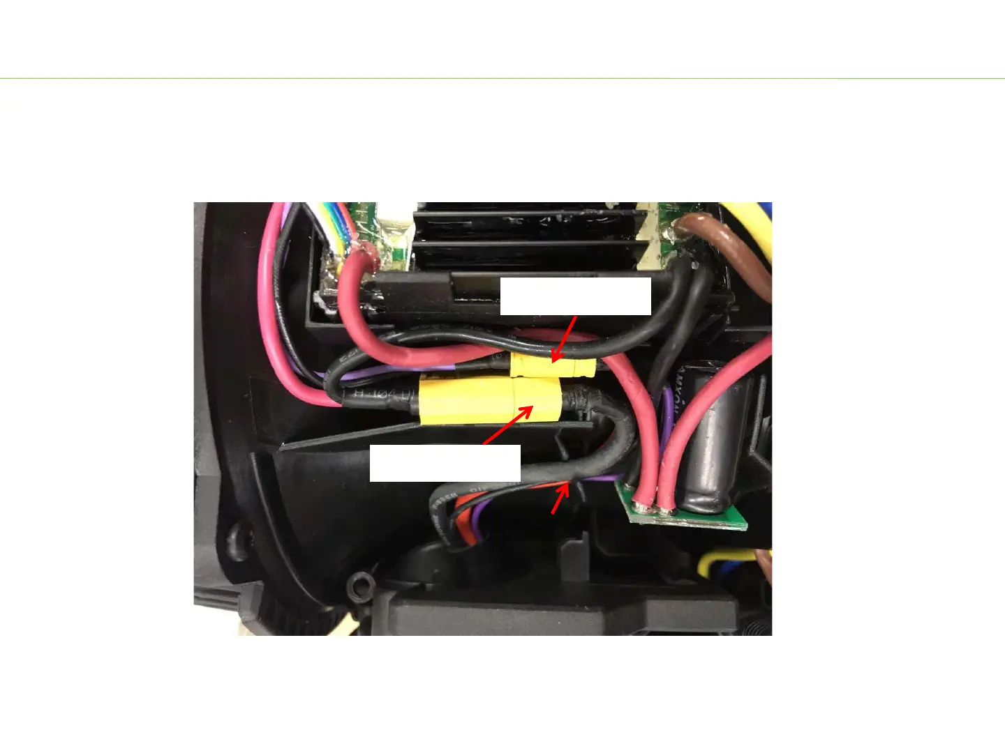 7. Align the red, purple and two black cables into the groove and put connector 2 and