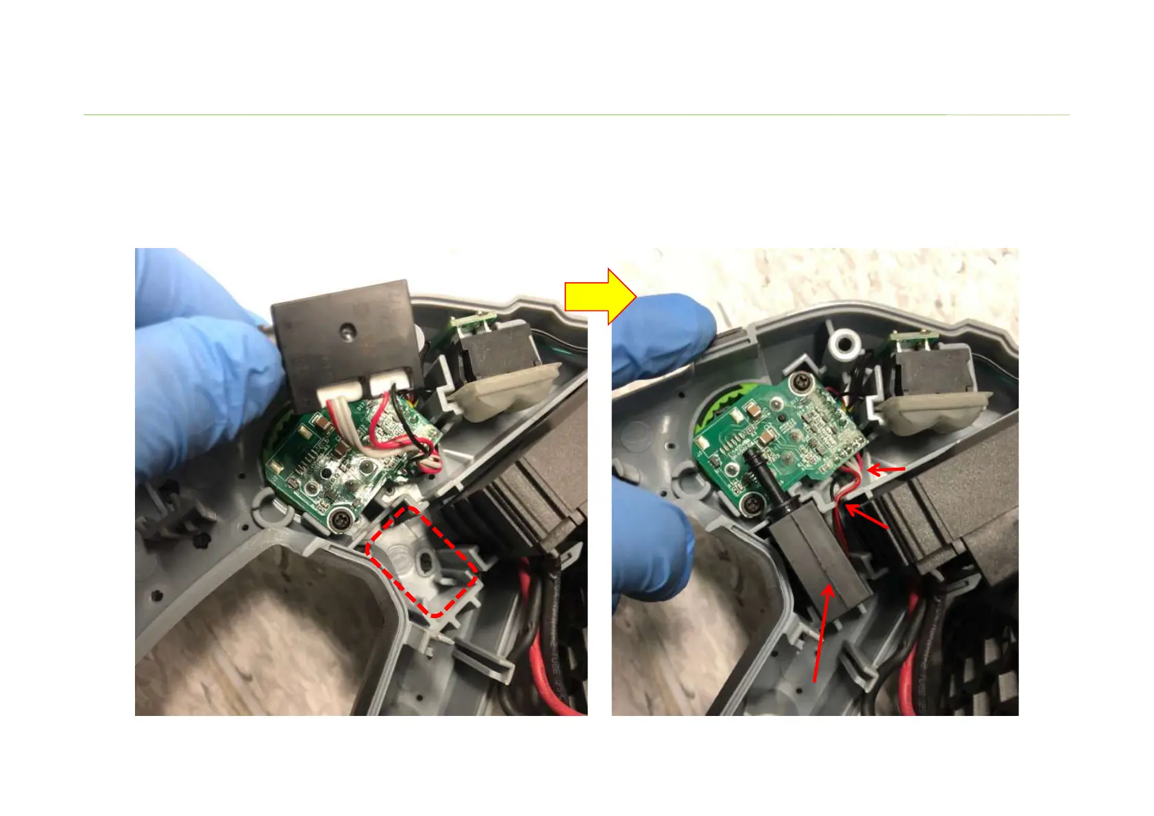 12. Align the other cables which link the main switch to the speed-adjustment PCBA into