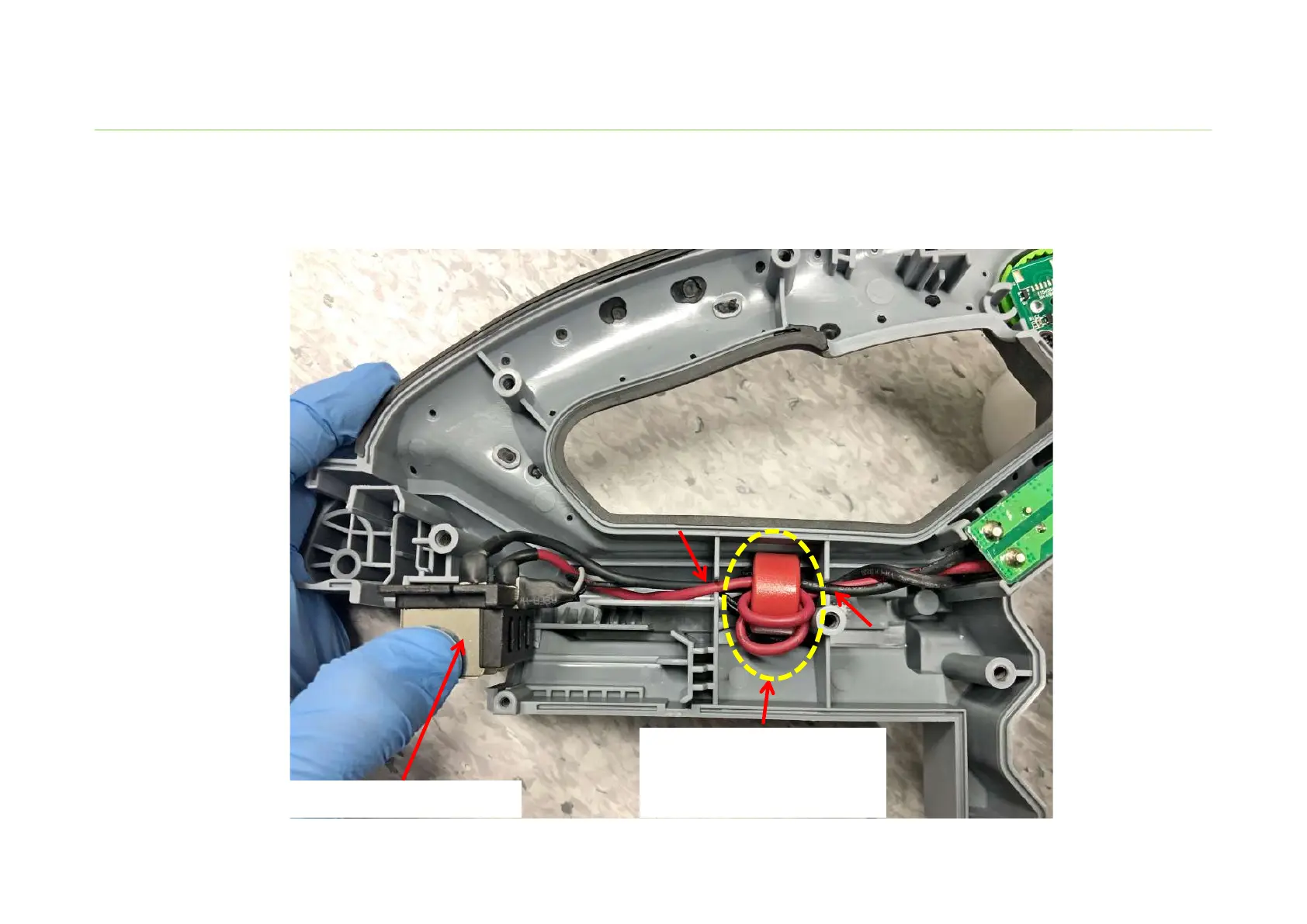 15. Mount the battery electric contacts into the left housing and align the cables into the