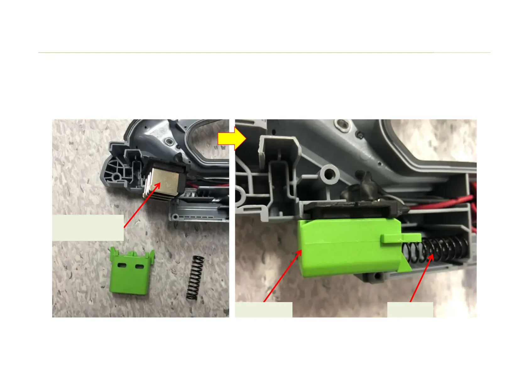 21. Mount the sliding block with the battery electric contacts and place the sliding block