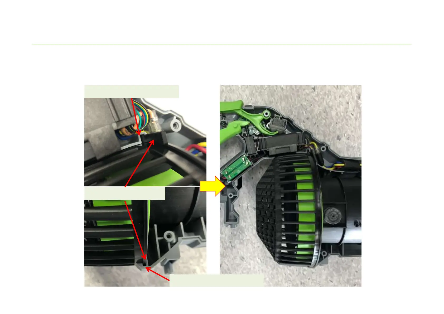 2. Align the rib on the fan baffle with the limit slot in handle housing, and mount the