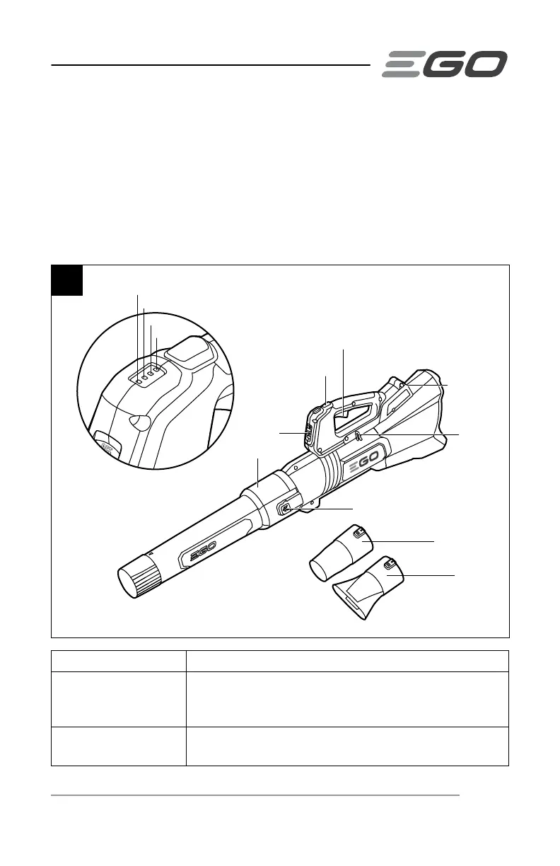 Variable-Speed Trigger Starts/stops the blower and adjusts the air speed.