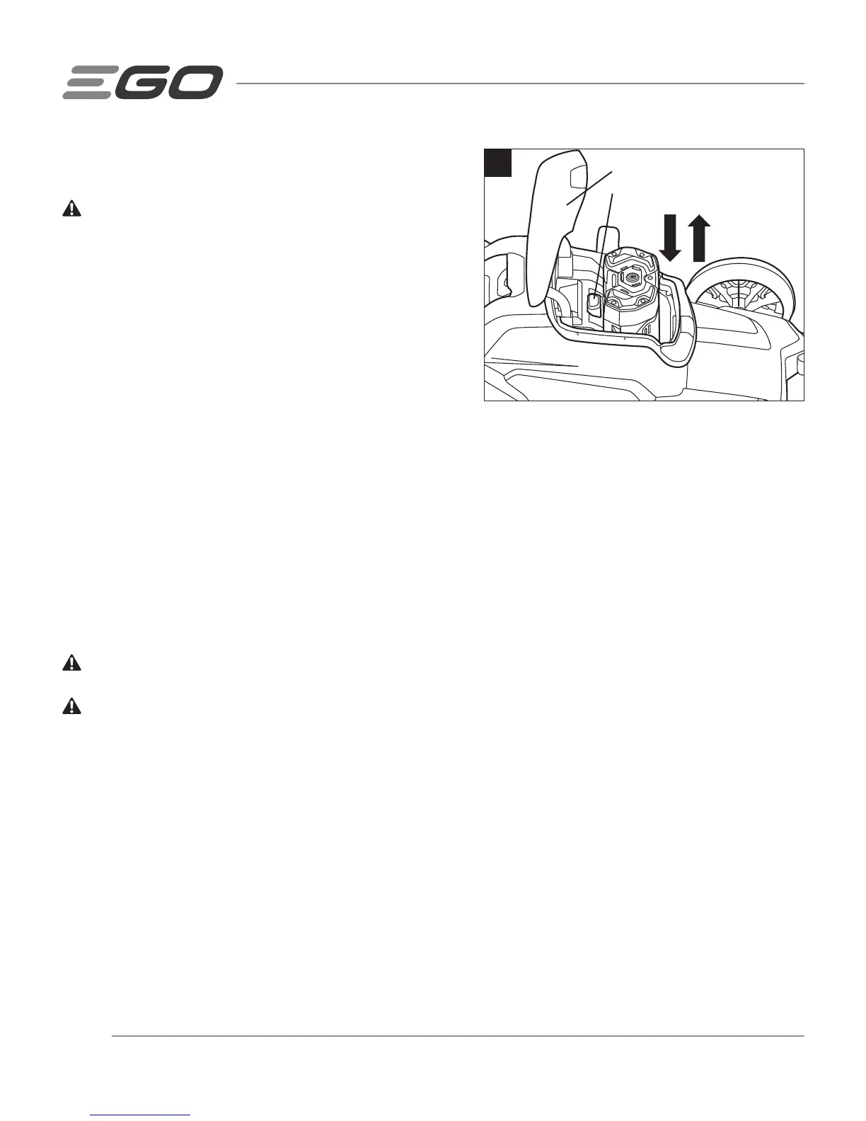 NOTICE: Make sure that the latch on the mower snaps into place and that the battery pack is secured to the mower