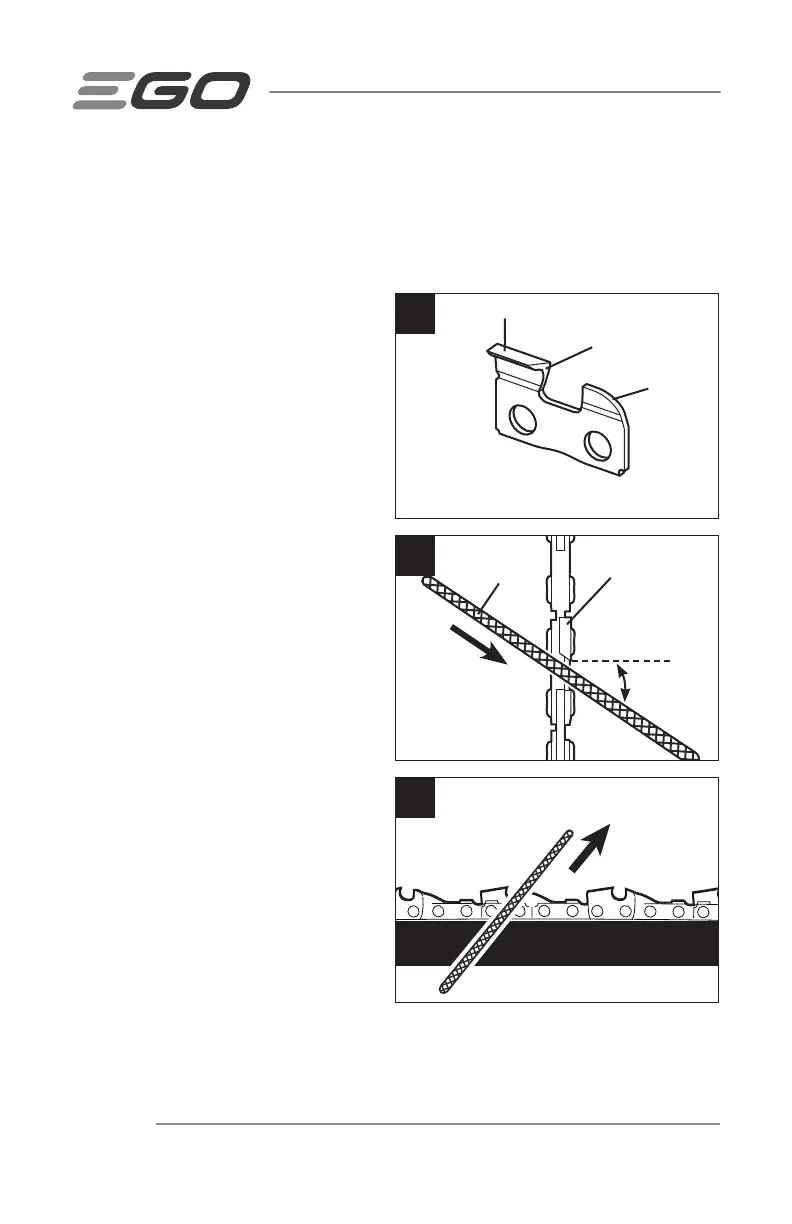 de 30° entre la lime et la chaîne de la scie ; voir Fig. 33 & 34. Utilisez toujours un