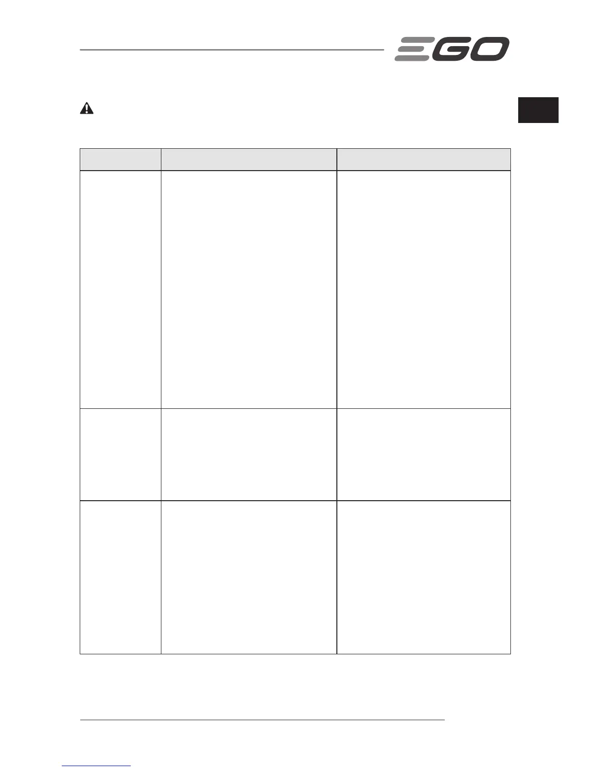 ◾ Mower is in overload condition. ◾ Raise the cutting height or slow down the