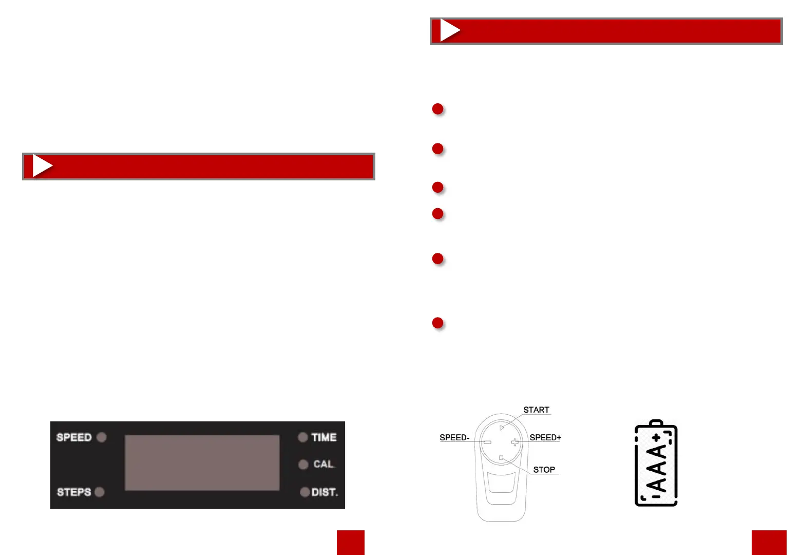 起動中のトレッドミルはリモコンの+ / −ボタンで速度の調整ができます。.