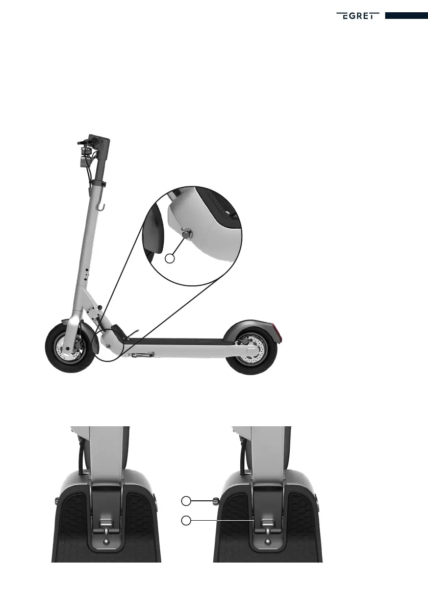1. Ziehe den Sicherheitsverschluss (G) heraus und drehe ihn um 90°, sodass er sichtbar