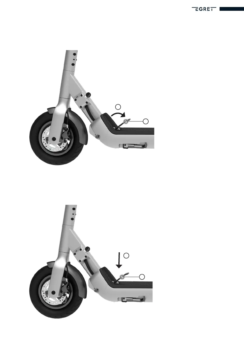 2. Pull the folding lever (H) towards the back of the scooter.