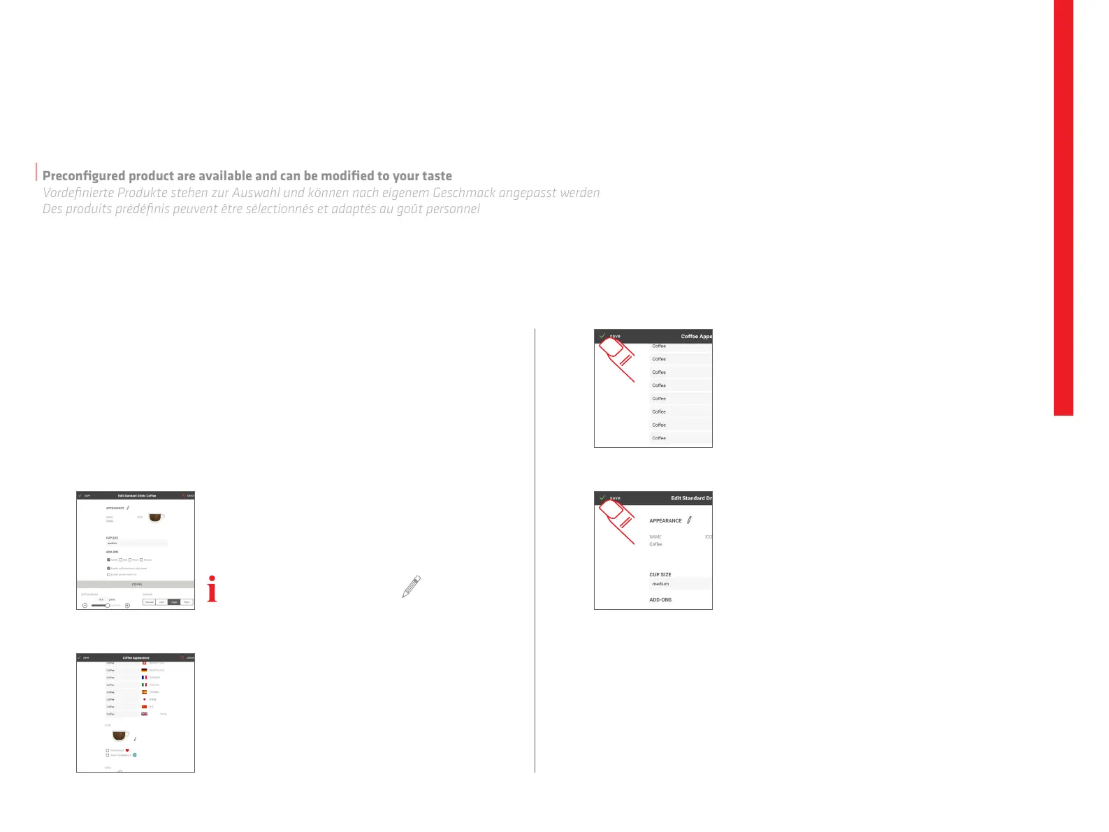 Des produits prédéfinis peuvent être sélectionnés et adaptés au goût personnel