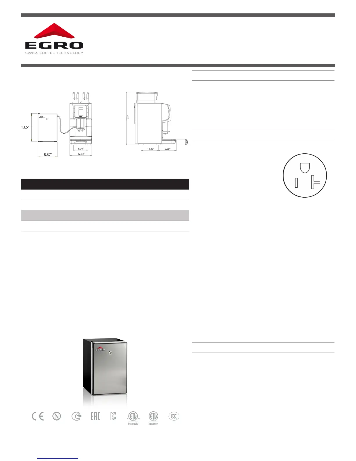 the counter. Please allow 3.5” - 4” of space for the plug,