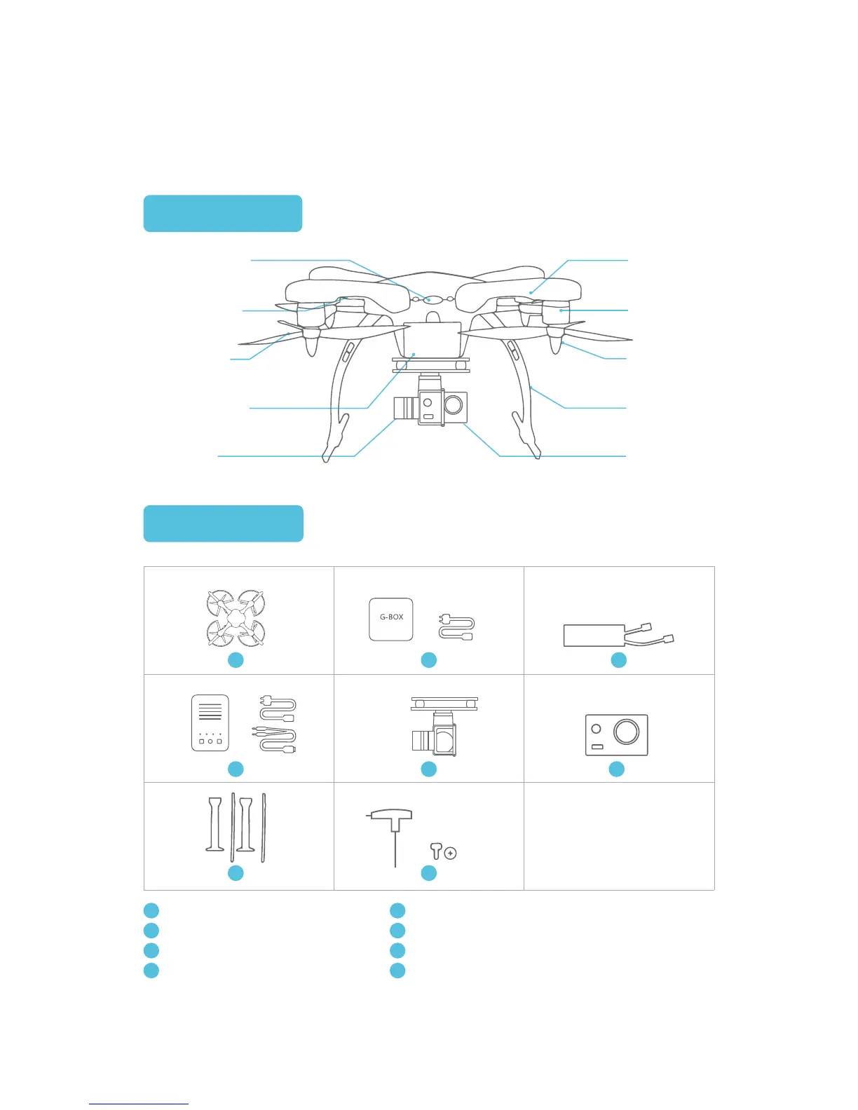 ehang GHOST - Drone Diagram and Components; Parts Identification; Package Contents