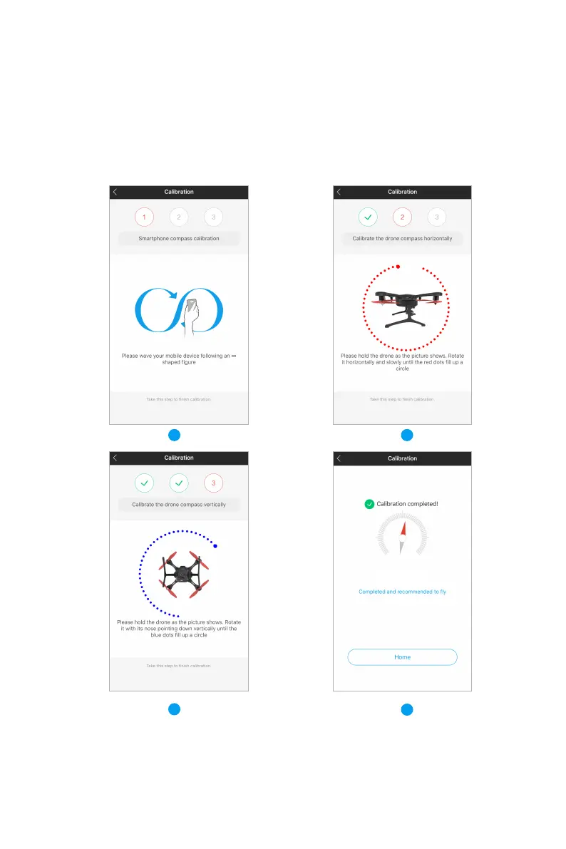 drone compass horizontally. (c) Calibration drone compass vertically. (d) Complete calibration.