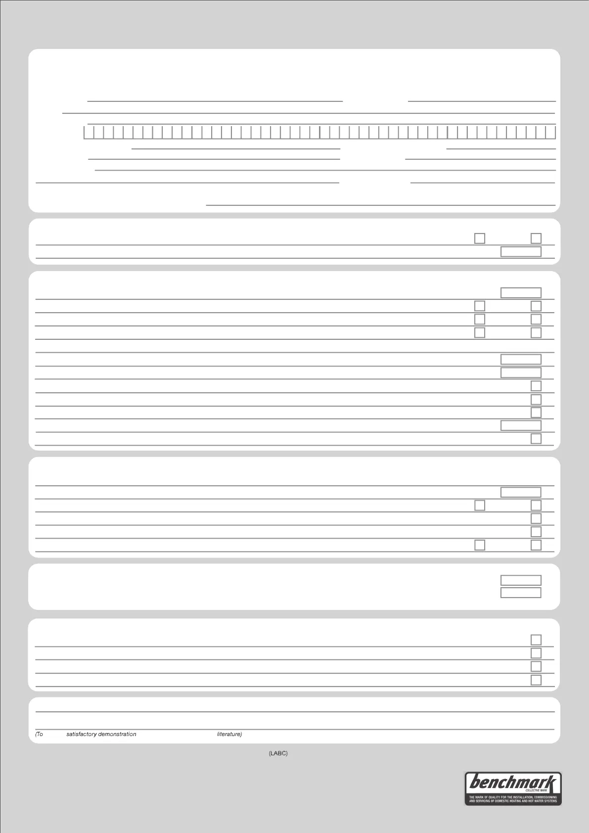 The manufacturer's literature, including Benchmark Checklist and Service Record, has been explained and left with the customer