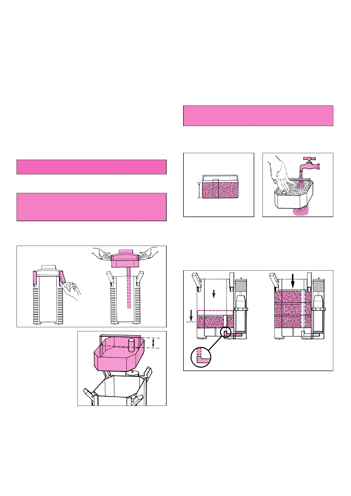 Fyld nu filterindsatserne med EHEIM filtermasser SUB-