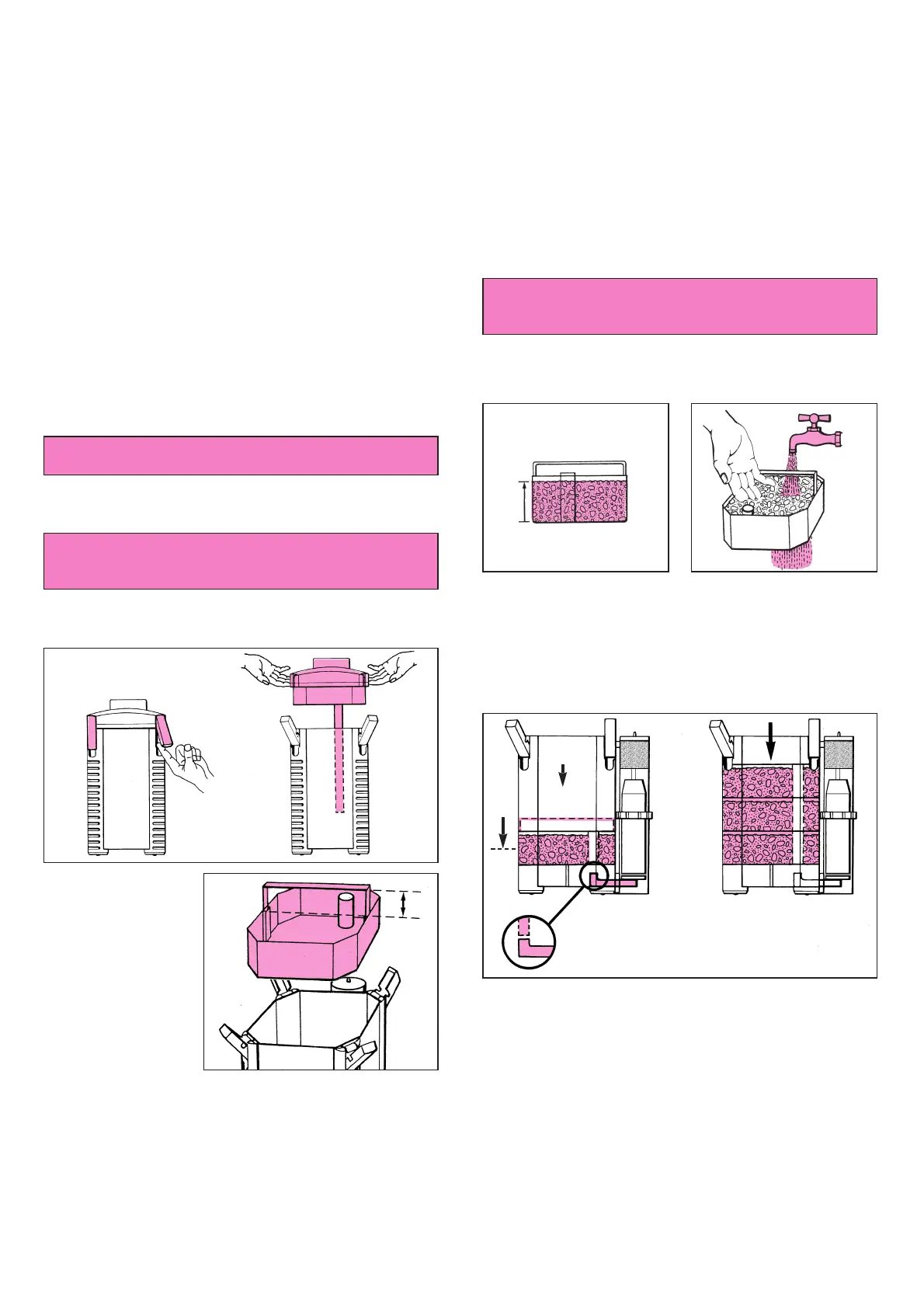 EHEIM 2327 - Filter Assembly Procedures; Unpacking and Initial Setup; Media Container and Pump Head Assembly