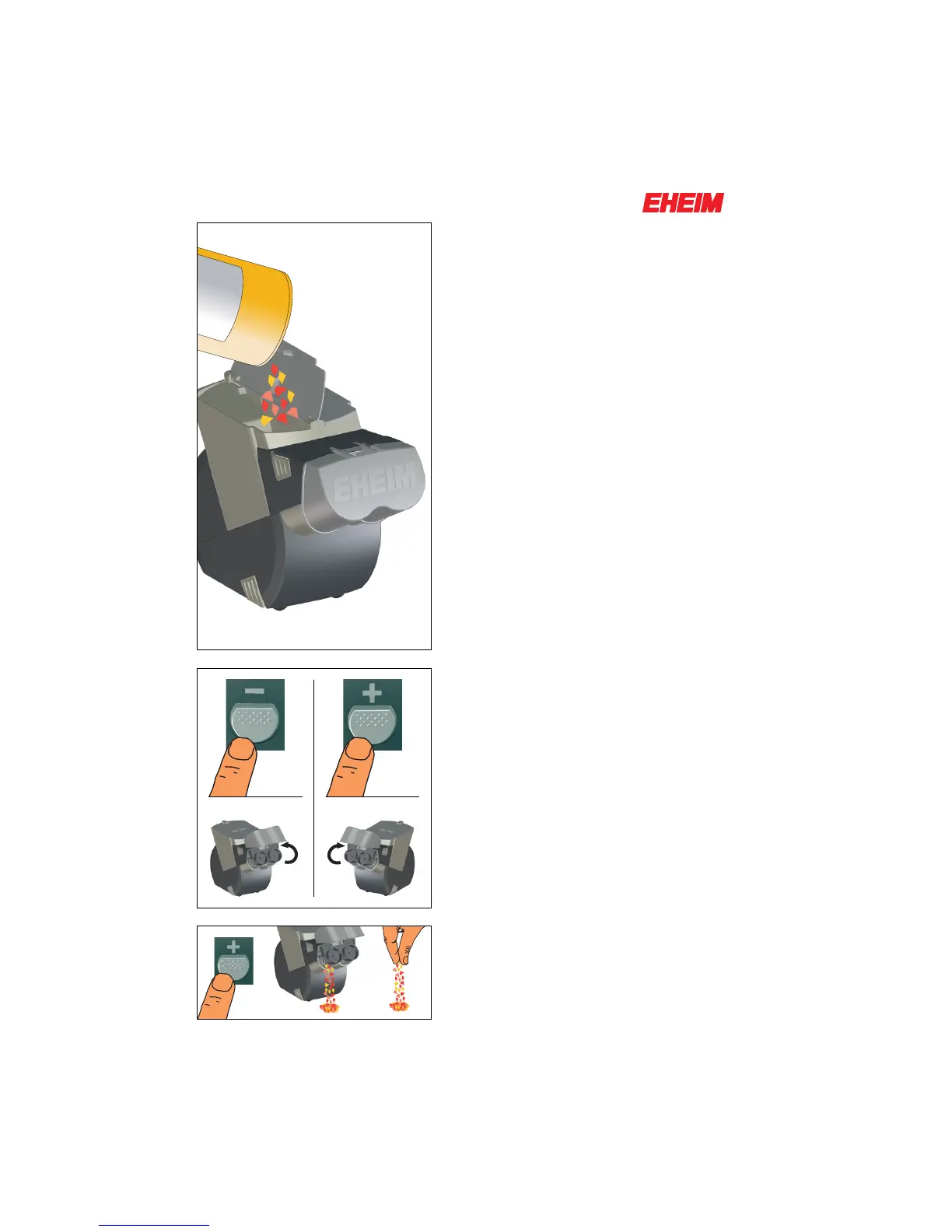 Fyll opp fôrspiralene: Trykk –/+ 3 x.