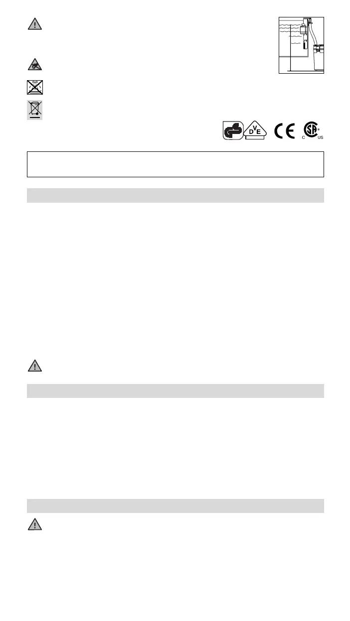 Pro správné fungování čerpadla dbejte, aby byla dodržena minimální hladina vody pro čerpadlo.