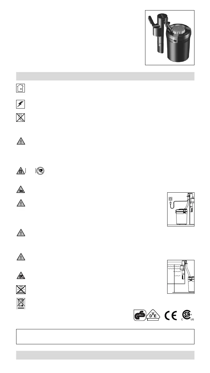Filtr przeznaczony wyłącznie do użytku w pomieszczeniach zamkniętych, do celów akwarys-